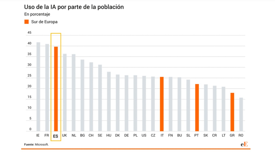 *Uso de IA por país en Europa. Fuente: El Economista / Microsoft.*