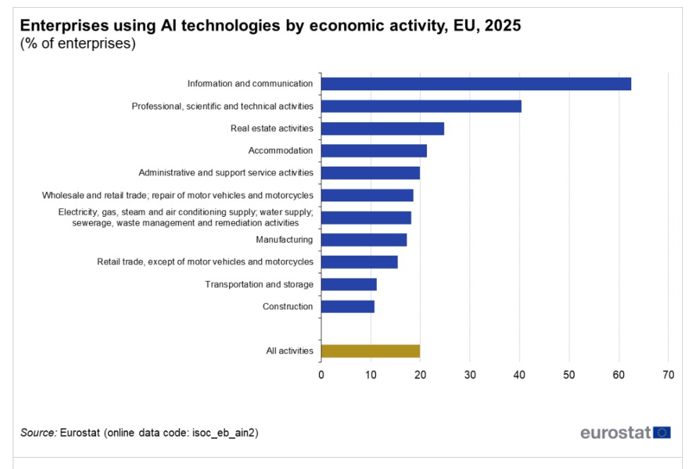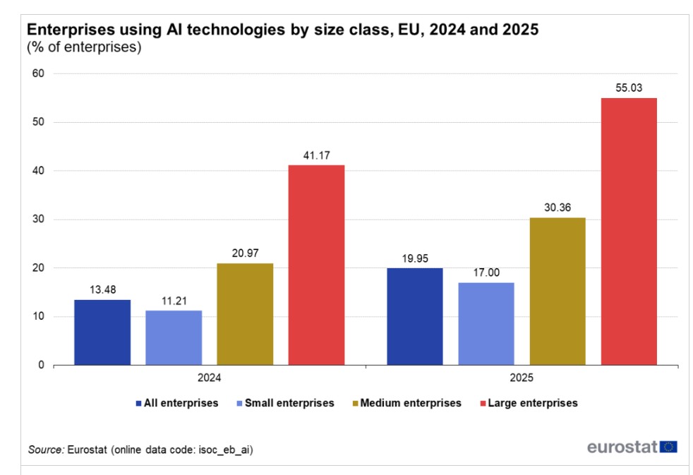 A fecha de diciembre de 2025, la Inteligencia Artificial (IA) ha dejado de ser una promesa para convertirse en infraestructura crítica. Según los últimos datos de Eurostat, España ha alcanzado un hito clave: el 20,3% de nuestras empresas ya integra la IA, situándose ligeramente por encima de la media de la Unión Europea (20%).
