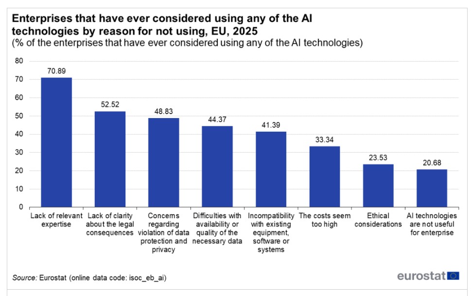 Entre las empresas que han considerado la IA pero no la han implementado, los motivos son claros: